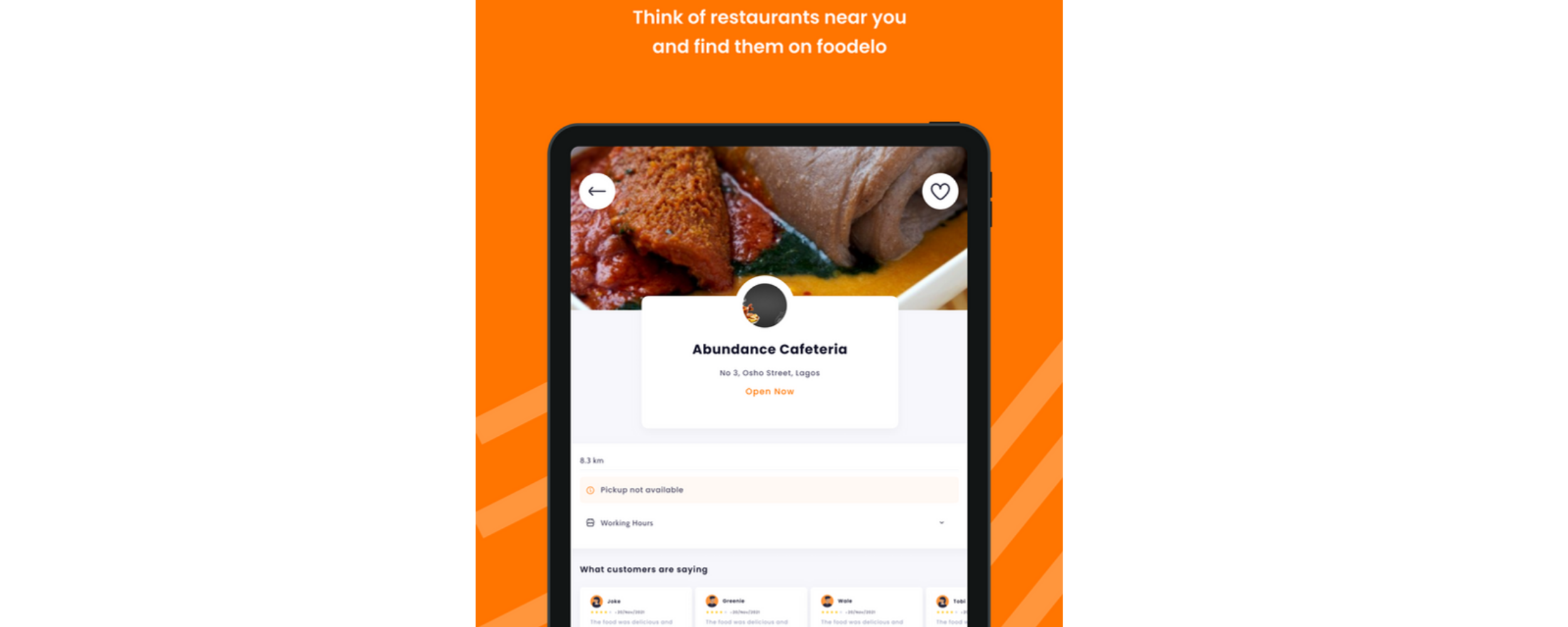 - A Customer mobile app that enable users order for meals from nearby restaurants, manage payment